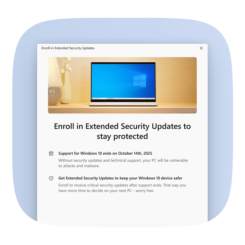 A partire dal 14 Ottobre 2025, Windows non fornirà più aggiornamenti software gratuiti o correzioni di sicurezza per il sistema operativo Windows 10. Tutti i computer su cui è installato Windows 10 continueranno a funzionare, ma saranno più esposti a virus e malware e rischieranno maggiori incompatibilità hardware.