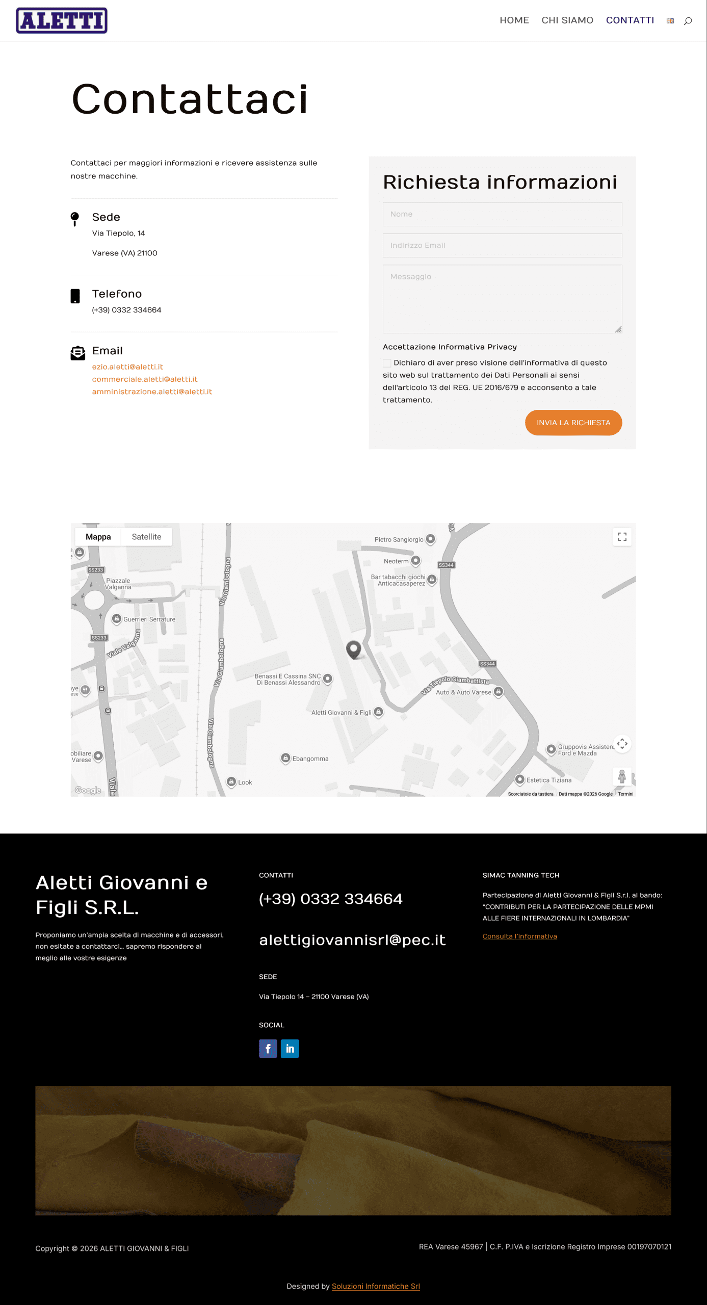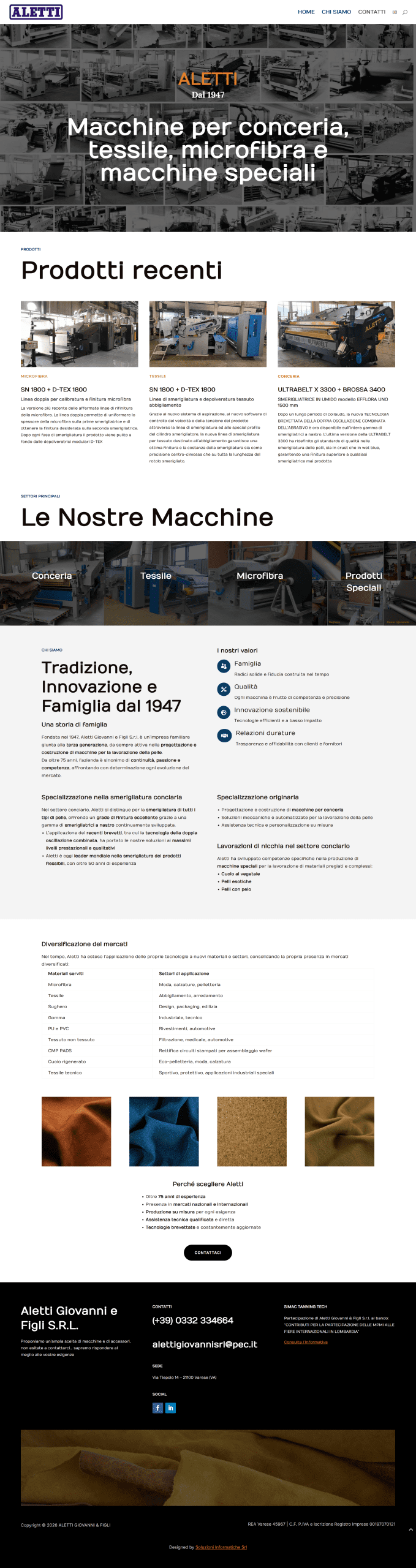 Per Aletti Giovanni & Figli, storica azienda italiana attiva dal 1947 nella produzione di macchine per conceria, tessile, microfibra e macchine speciali, abbiamo curato la realizzazione di un nuovo sito web aziendale completamente rinnovato.